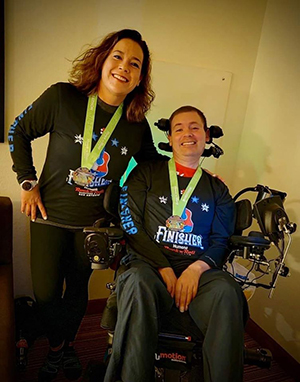 Chris has been living with ALS for the past five years, and although his body has deteriorated, he is still a full-time engineer, and thanks to friends like Maria, can participate in athletic events. This was his second marathon, and Maria’s first.